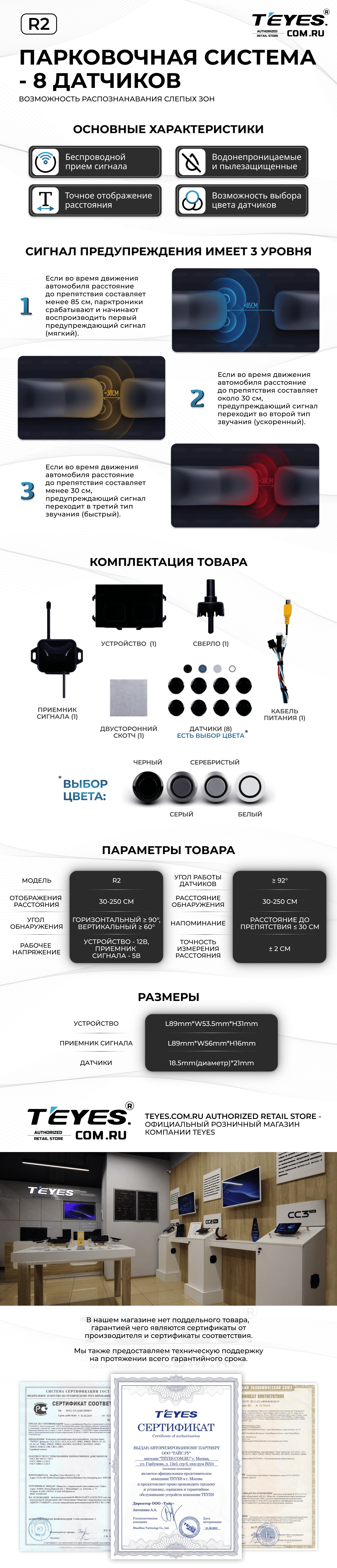 Передние и задние парктроники Teyes R2 для CC4 Pro / CC4 / CC4L / CC3 2K / CC3 / CC3L / CC2 Plus / SPRO Plus / TPRO2 / LUX ONE (Белые) 8-датчиков - купить всего за 19 900 руб. в интернет-магазине в Саратове Teyes.com.ru. ✓ Самый лучший выбор мультимедиа ✓ Лучшая замена штатному ГУ ✓ Тел. +7 (800) 775-31-74