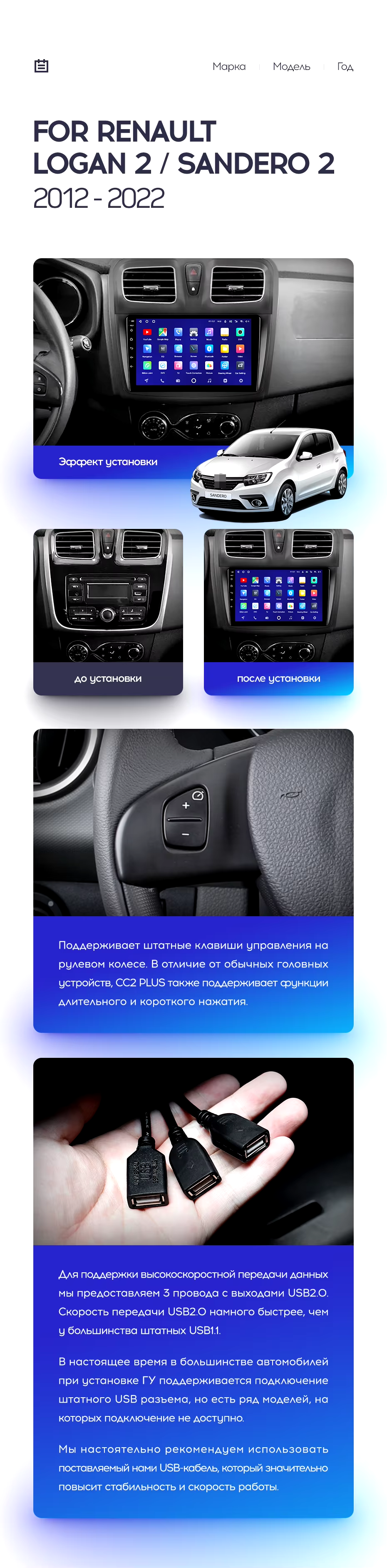 Штатная магнитола Teyes CC2 Plus 4/32 Renault Logan 2 (2012-2022) F2 - купить всего за 35 000 руб. в интернет-магазине в Саратове Teyes.com.ru. ✓ Самый лучший выбор мультимедиа ✓ Лучшая замена штатному ГУ ✓ Тел. +7 (800) 775-31-74