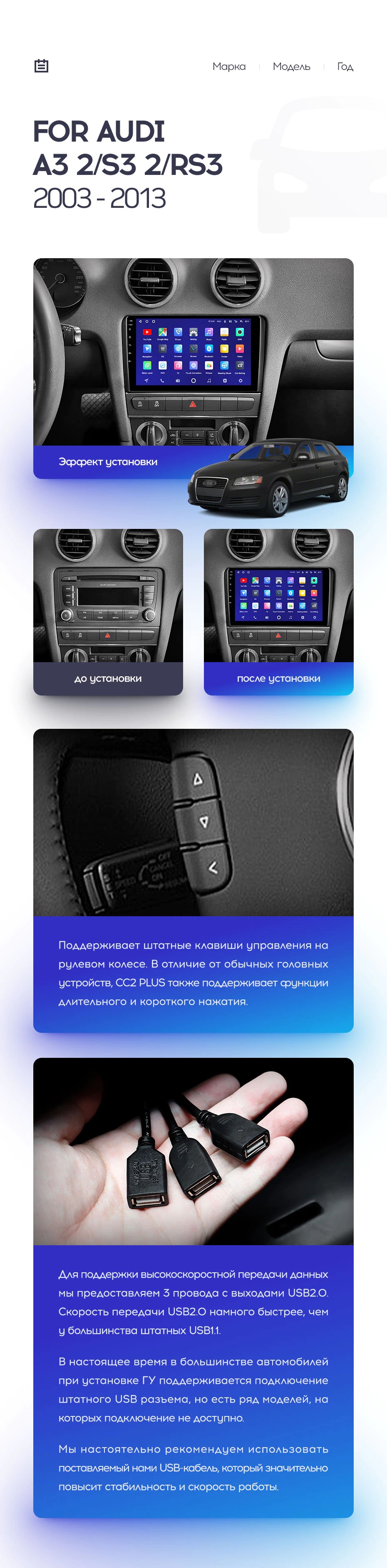 Штатная магнитола Teyes CC2L Plus 2/32 Audi A3 2 8P (2003-2013) - купить всего за 19 400 руб. в интернет-магазине в Саратове Teyes.com.ru. ✓ Самый лучший выбор мультимедиа ✓ Лучшая замена штатному ГУ ✓ Тел. +7 (800) 775-31-74