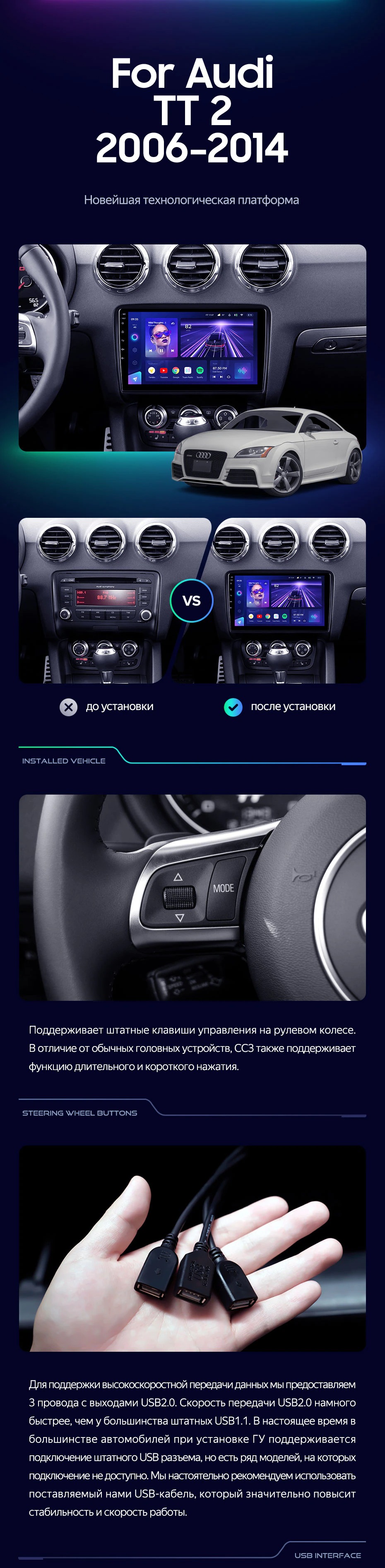 Штатная магнитола Teyes CC3 2K 360 6/128 Audi TT 2 (2006-2014) (13") - купить всего за 52 200 руб. в интернет-магазине в Саратове Teyes.com.ru. ✓ Самый лучший выбор мультимедиа ✓ Лучшая замена штатному ГУ ✓ Тел. +7 (800) 775-31-74