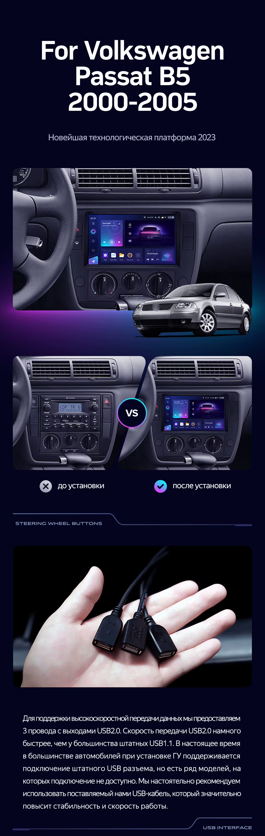 Штатная магнитола Teyes CC3 2K 6/128 Volkswagen Passat B5 (2000-2005) - купить всего за 46 160 руб. в интернет-магазине в Саратове Teyes.com.ru. ✓ Самый лучший выбор мультимедиа ✓ Лучшая замена штатному ГУ ✓ Тел. +7 (800) 775-31-74