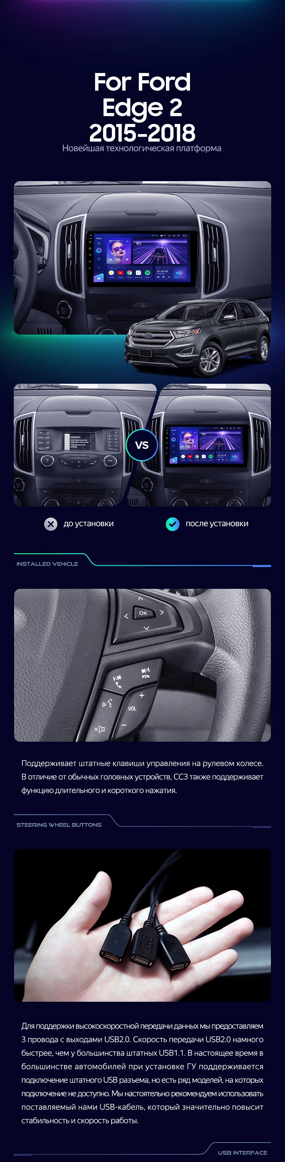 Штатная магнитола Teyes CC3 4/32 Ford Edge 2 (2015-2018) F1 - купить всего за 32 830 руб. в интернет-магазине в Саратове Teyes.com.ru. ✓ Самый лучший выбор мультимедиа ✓ Лучшая замена штатному ГУ ✓ Тел. +7 (800) 775-31-74