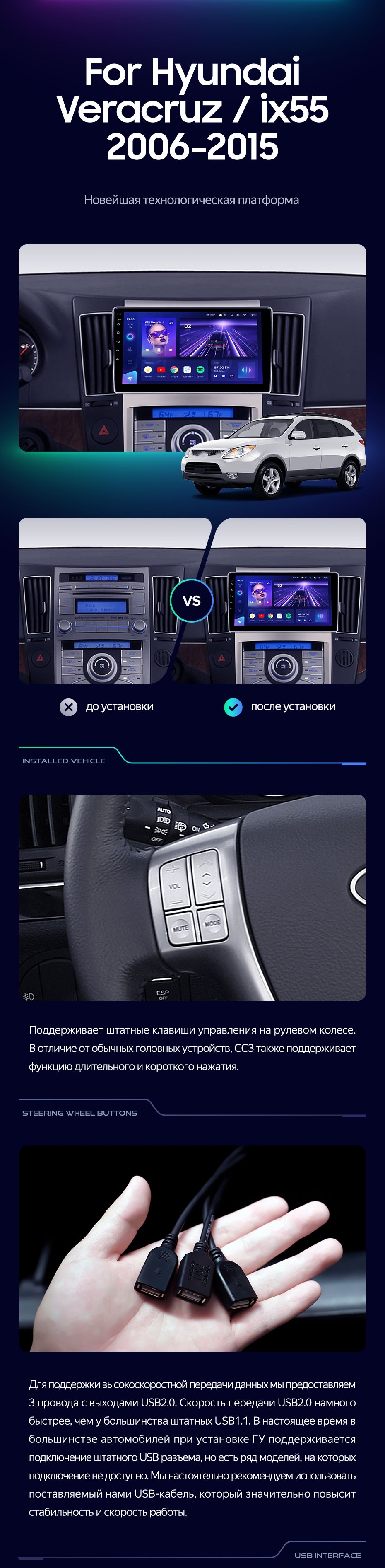 Штатная магнитола Teyes CC3 4/32 Hyundai ix55 (2006-2015) - купить всего за 34 730 руб. в интернет-магазине в Саратове Teyes.com.ru. ✓ Самый лучший выбор мультимедиа ✓ Лучшая замена штатному ГУ ✓ Тел. +7 (800) 775-31-74