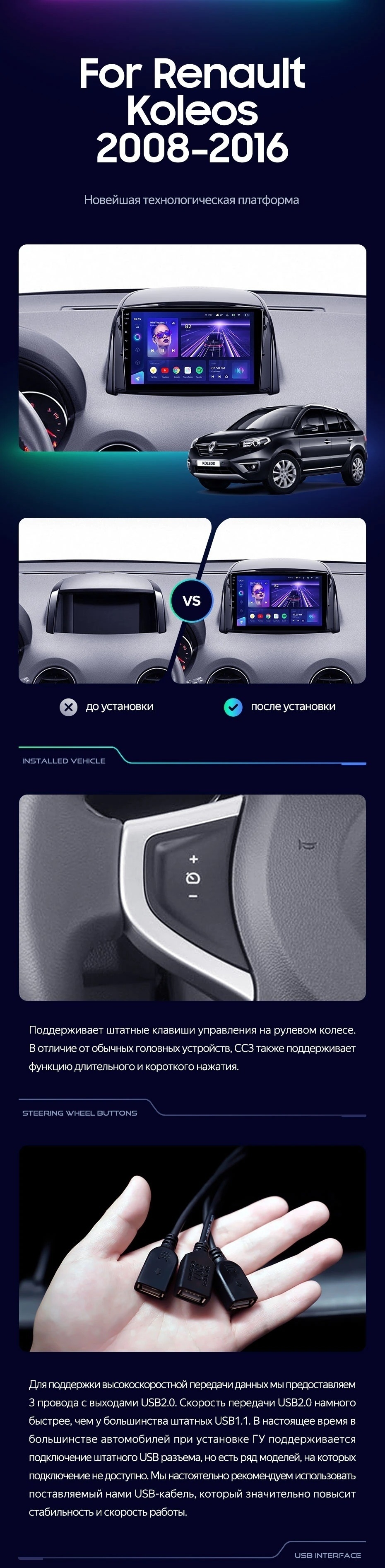 Штатная магнитола Teyes CC3 4/32 Renault Koleos (2008-2016) Тип-A - купить всего за 36 030 руб. в интернет-магазине в Саратове Teyes.com.ru. ✓ Самый лучший выбор мультимедиа ✓ Лучшая замена штатному ГУ ✓ Тел. +7 (800) 775-31-74