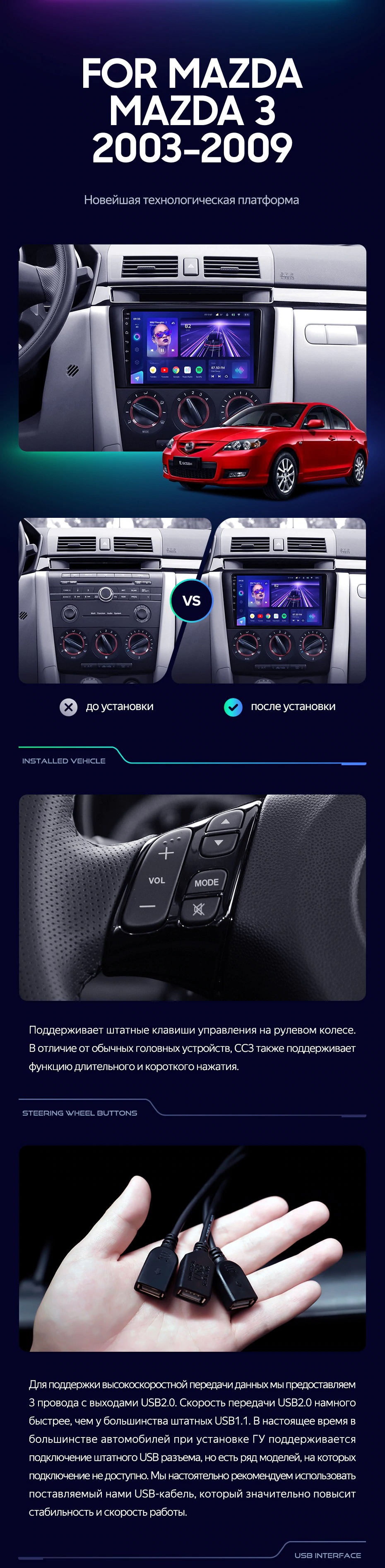 Штатная магнитола Teyes CC3L 4/32 Mazda 3 1 BK (2003-2009) - купить всего за 28 740 руб. в интернет-магазине в Саратове Teyes.com.ru. ✓ Самый лучший выбор мультимедиа ✓ Лучшая замена штатному ГУ ✓ Тел. +7 (800) 775-31-74