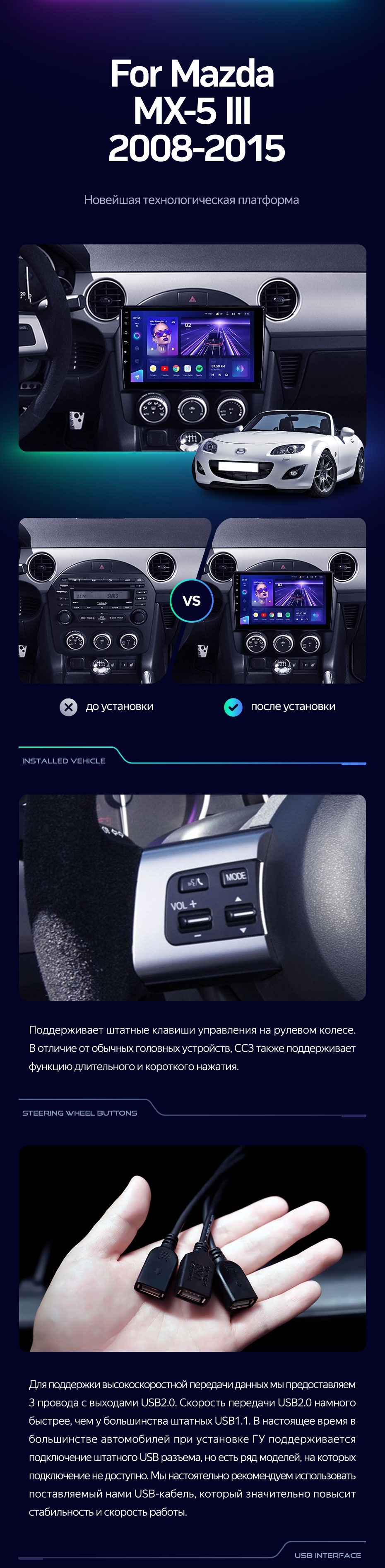 Штатная магнитола Teyes CC3L 4/32 Mazda MX-5 (2008-2015) - купить всего за 30 200 руб. в интернет-магазине в Саратове Teyes.com.ru. ✓ Самый лучший выбор мультимедиа ✓ Лучшая замена штатному ГУ ✓ Тел. +7 (800) 775-31-74