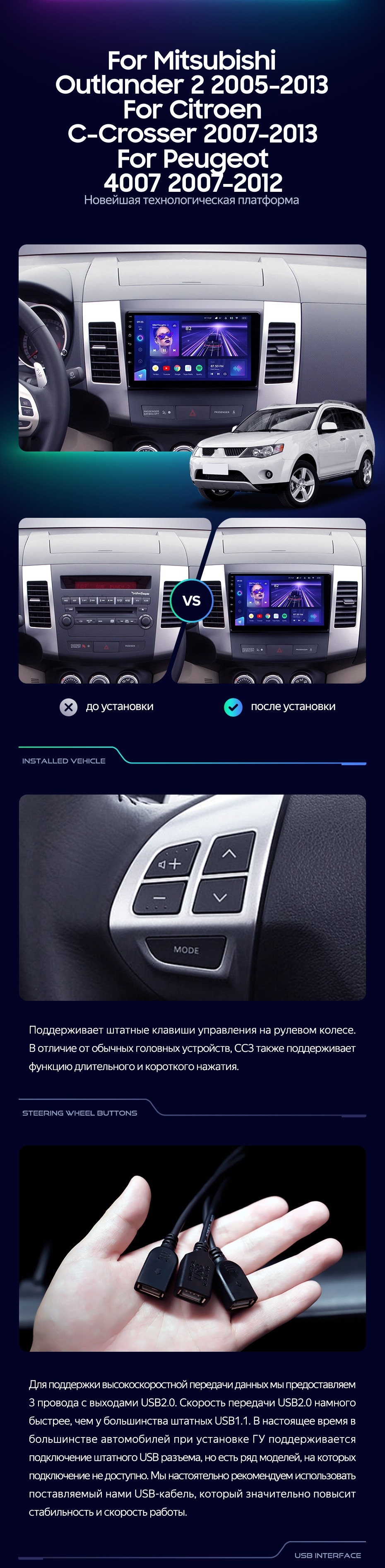 Штатная магнитола Teyes CC3L 4/32 Mitsubishi Outlander 2 (2005-2011) Тип-B - купить всего за 28 600 руб. в интернет-магазине в Саратове Teyes.com.ru. ✓ Самый лучший выбор мультимедиа ✓ Лучшая замена штатному ГУ ✓ Тел. +7 (800) 775-31-74