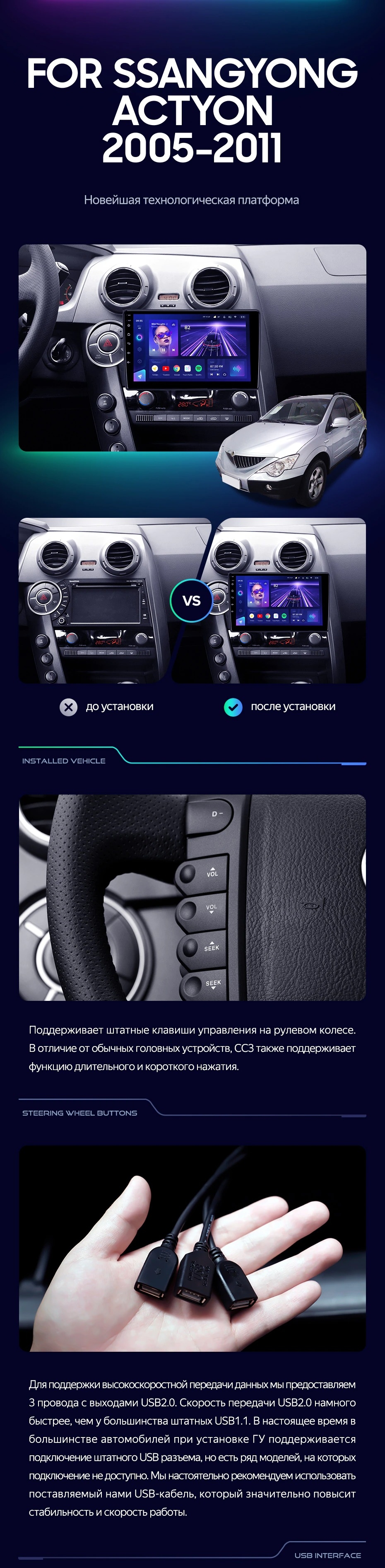 Штатная магнитола Teyes CC3L 4/32 SsangYong Actyon C100 (2005-2011) - купить всего за 28 180 руб. в интернет-магазине в Саратове Teyes.com.ru. ✓ Самый лучший выбор мультимедиа ✓ Лучшая замена штатному ГУ ✓ Тел. +7 (800) 775-31-74