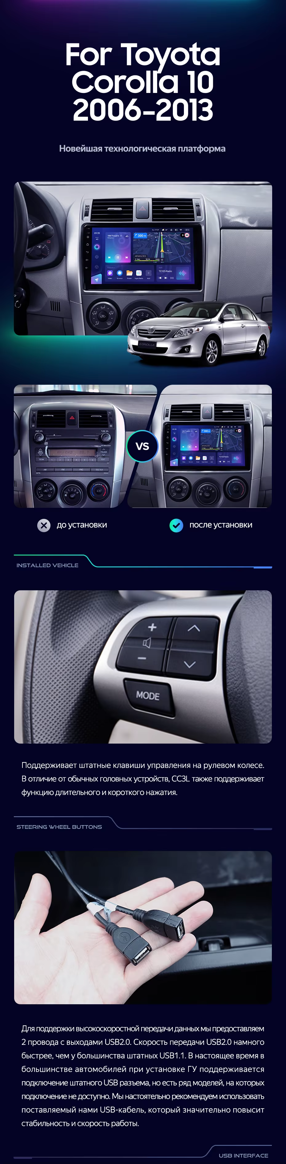 Штатная магнитола Teyes CC3L 4/32 Toyota Corolla 10 E140 E150 (2006-2013) Тип-B - купить всего за 27 790 руб. в интернет-магазине в Саратове Teyes.com.ru. ✓ Самый лучший выбор мультимедиа ✓ Лучшая замена штатному ГУ ✓ Тел. +7 (800) 775-31-74