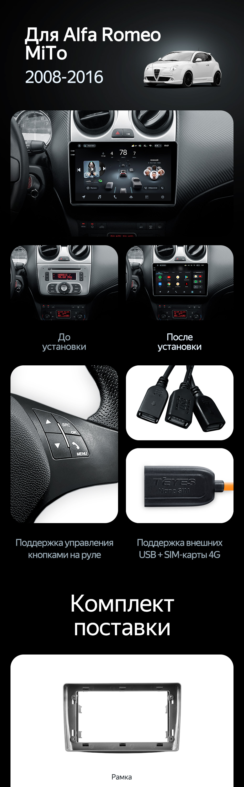 Штатная магнитола Teyes CC4 6/64 Alfa Romeo MiTo 955 (2008-2016) - купить всего за 46 500 руб. в интернет-магазине в Саратове Teyes.com.ru. ✓ Самый лучший выбор мультимедиа ✓ Лучшая замена штатному ГУ ✓ Тел. +7 (800) 775-31-74
