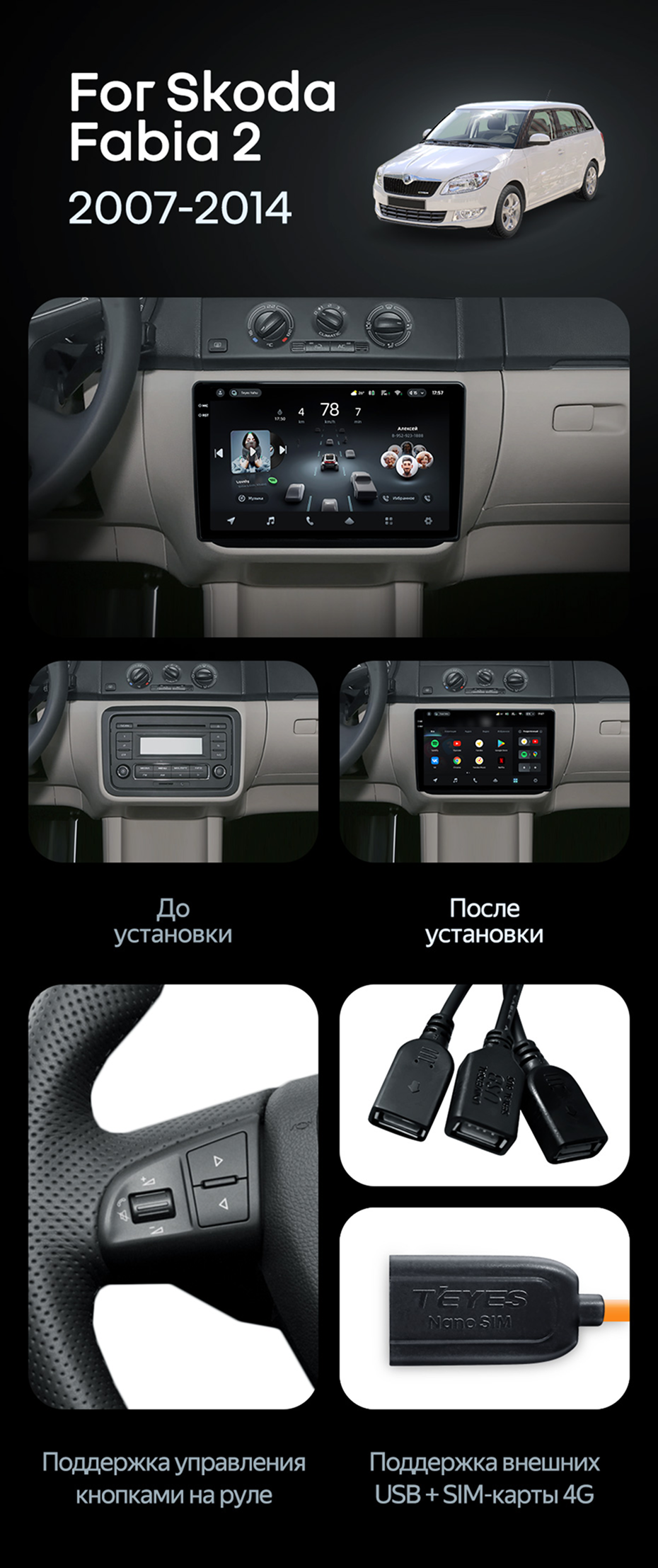 Штатная магнитола Teyes CC4 6/64 Skoda Fabia 2 (2007-2014) - купить всего за 47 800 руб. в интернет-магазине в Саратове Teyes.com.ru. ✓ Самый лучший выбор мультимедиа ✓ Лучшая замена штатному ГУ ✓ Тел. +7 (800) 775-31-74