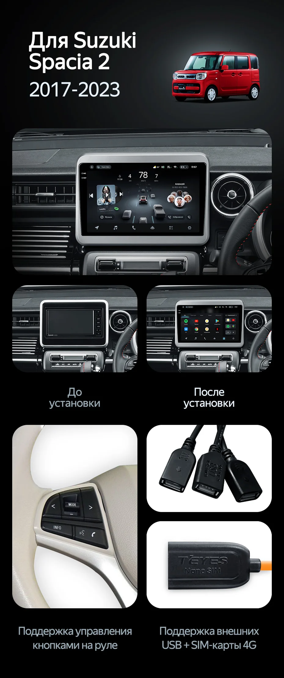 Штатная магнитола Teyes CC4 6/64 Suzuki Spacia 2 (2017-2023) - купить всего за 43 700 руб. в интернет-магазине в Саратове Teyes.com.ru. ✓ Самый лучший выбор мультимедиа ✓ Лучшая замена штатному ГУ ✓ Тел. +7 (800) 775-31-74