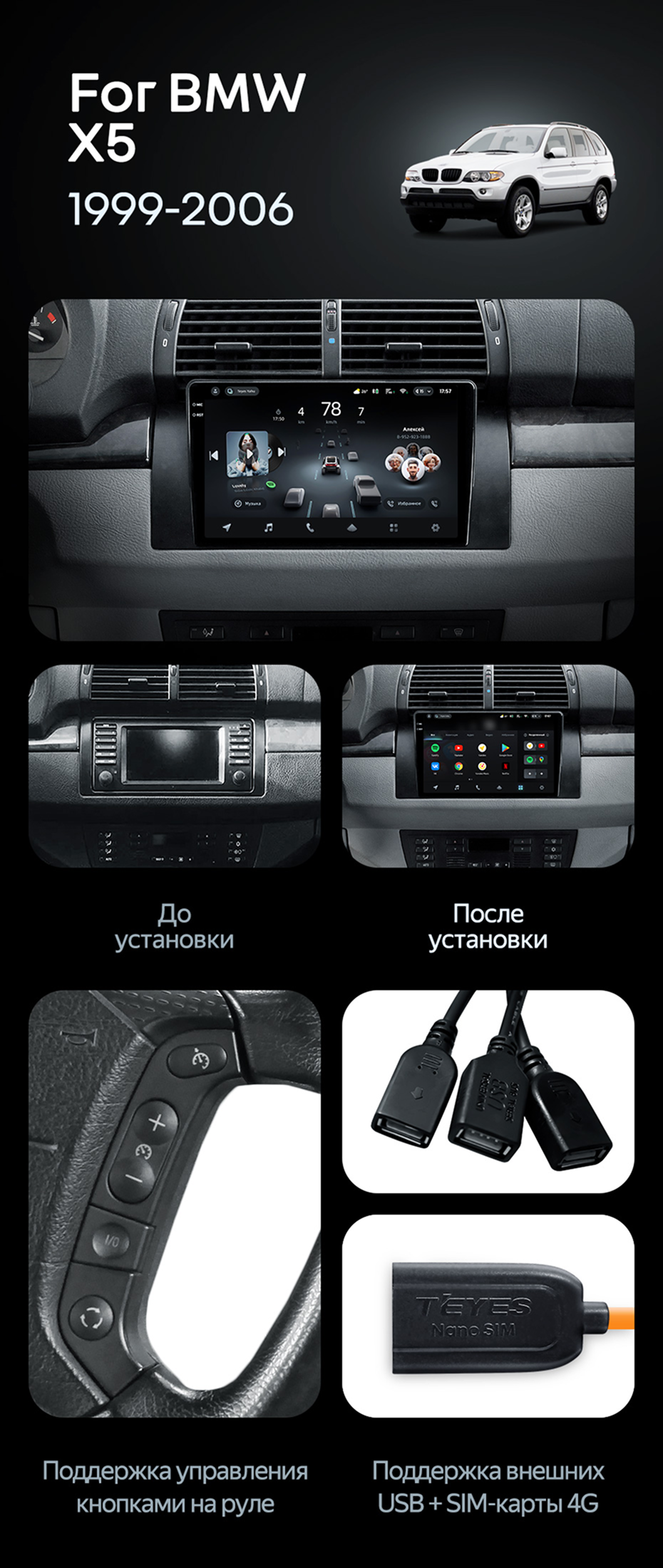 Штатная магнитола Teyes CC4 8/128 BMW X5 E39 E53 (1999-2006) - купить всего за 48 900 руб. в интернет-магазине в Саратове Teyes.com.ru. ✓ Самый лучший выбор мультимедиа ✓ Лучшая замена штатному ГУ ✓ Тел. +7 (800) 775-31-74