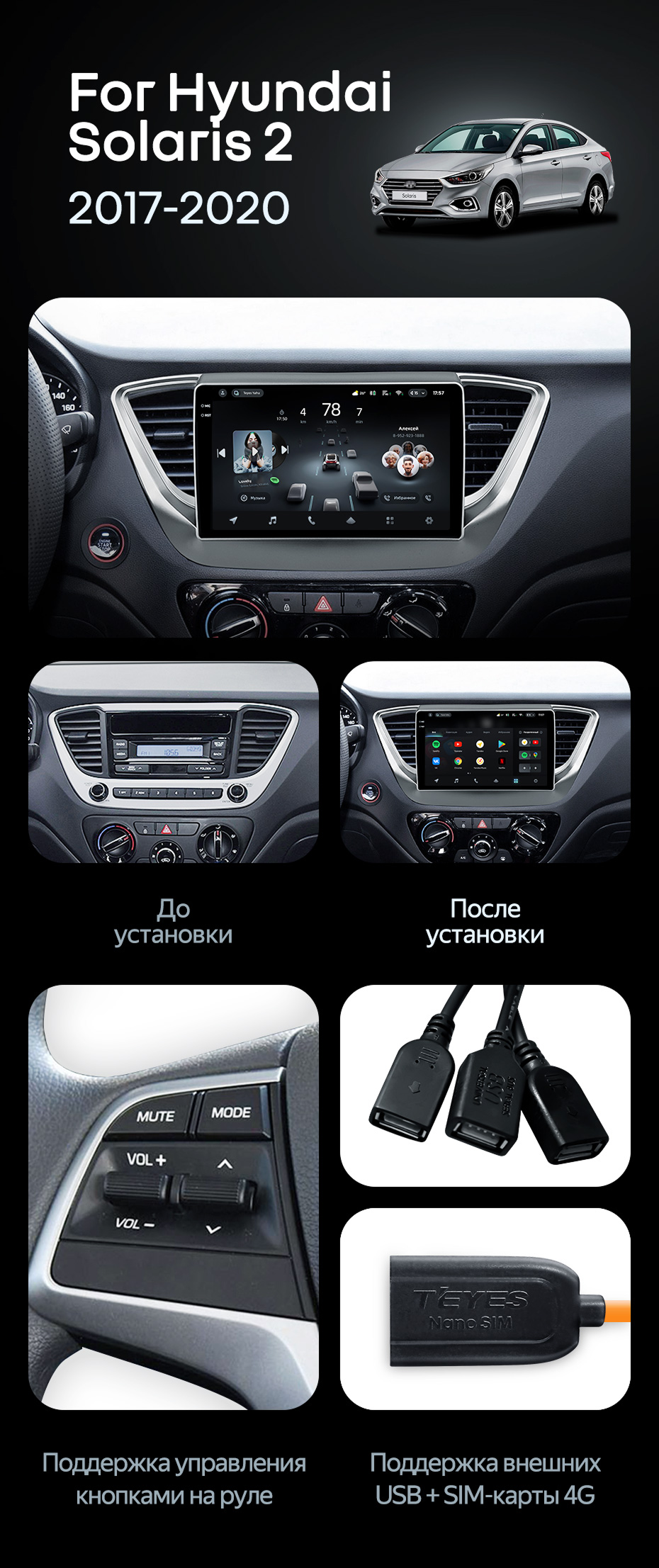 Штатная магнитола Teyes CC4 Pro 8/128 Hyundai Solaris 2 (2017-2020) F1 Тип-A - купить всего за 58 030 руб. в интернет-магазине в Саратове Teyes.com.ru. ✓ Самый лучший выбор мультимедиа ✓ Лучшая замена штатному ГУ ✓ Тел. +7 (800) 775-31-74