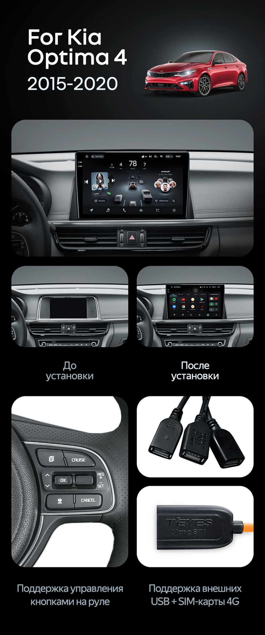 Штатная магнитола Teyes CC4 Pro 8/128 Kia Optima 4 JF (2015-2020) Тип-A - купить всего за 57 990 руб. в интернет-магазине в Саратове Teyes.com.ru. ✓ Самый лучший выбор мультимедиа ✓ Лучшая замена штатному ГУ ✓ Тел. +7 (800) 775-31-74