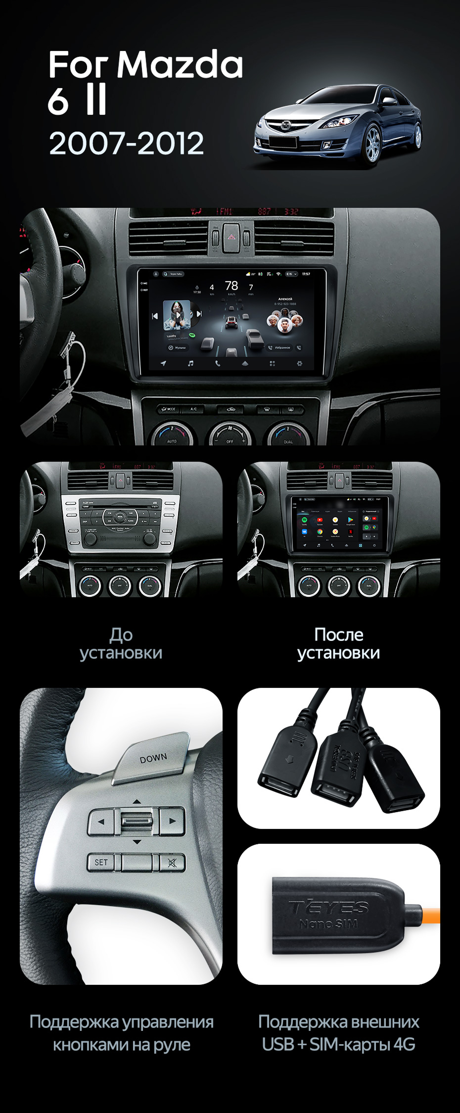 Штатная магнитола Teyes CC4 Pro 8/128 Mazda 6 2 GH (2007-2012) - купить всего за 58 360 руб. в интернет-магазине в Саратове Teyes.com.ru. ✓ Самый лучший выбор мультимедиа ✓ Лучшая замена штатному ГУ ✓ Тел. +7 (800) 775-31-74