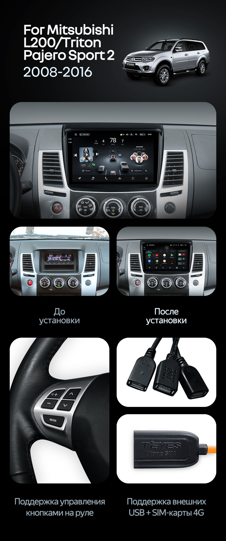 Штатная магнитола Teyes CC4 Pro 8/128 Mitsubishi L200 (2008-2016) - купить всего за 58 320 руб. в интернет-магазине в Саратове Teyes.com.ru. ✓ Самый лучший выбор мультимедиа ✓ Лучшая замена штатному ГУ ✓ Тел. +7 (800) 775-31-74