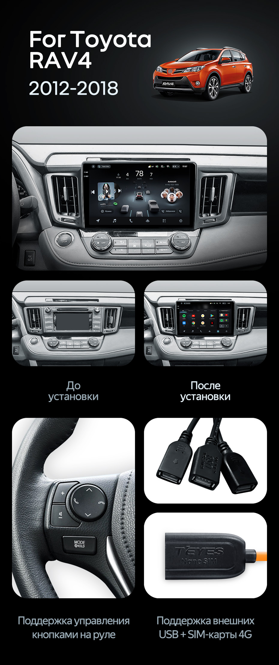 Штатная магнитола Teyes CC4 Pro 8/128 Toyota RAV4 (2012-2018) - купить всего за 58 740 руб. в интернет-магазине в Саратове Teyes.com.ru. ✓ Самый лучший выбор мультимедиа ✓ Лучшая замена штатному ГУ ✓ Тел. +7 (800) 775-31-74