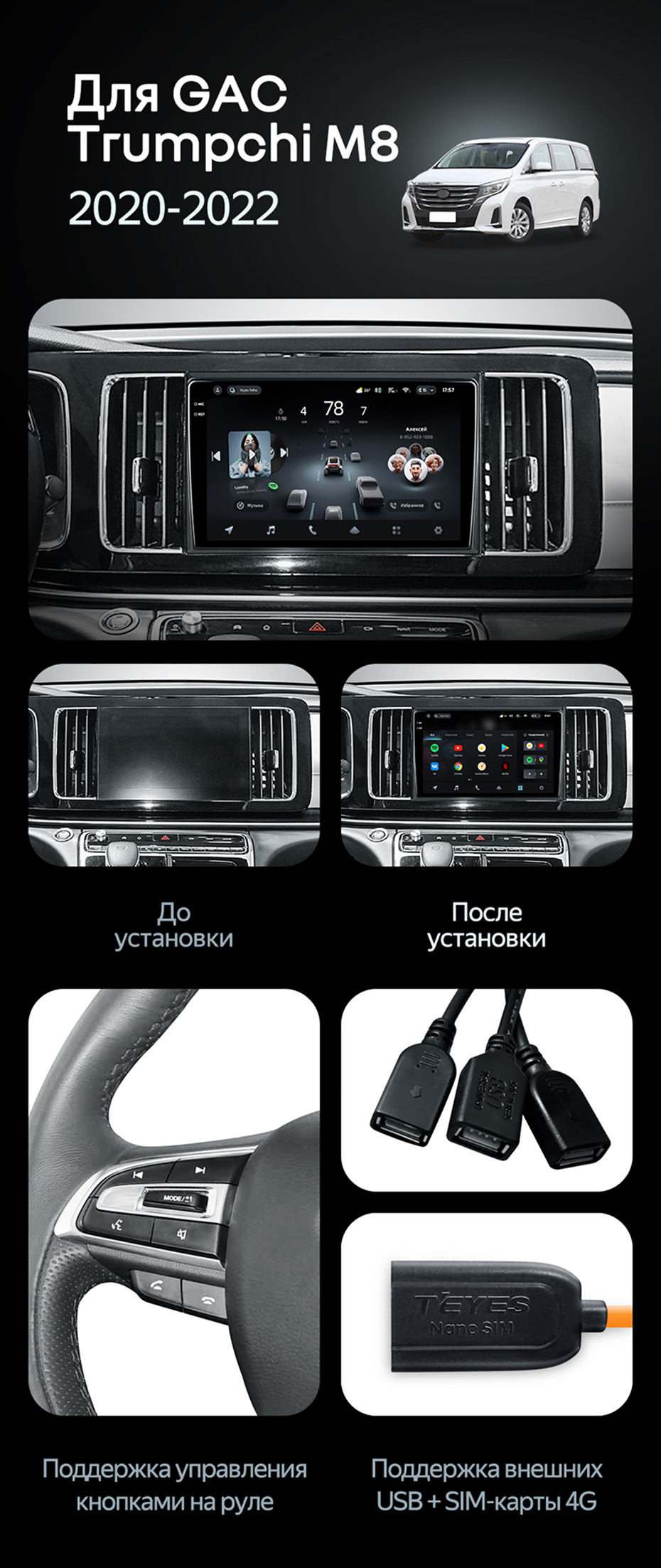Переходная рамка GAC Trumpchi M8 (2020-2022) (10") - купить всего за 5 400 руб. в интернет-магазине в Саратове Teyes.com.ru. ✓ Самый лучший выбор мультимедиа ✓ Лучшая замена штатному ГУ ✓ Тел. +7 (800) 775-31-74