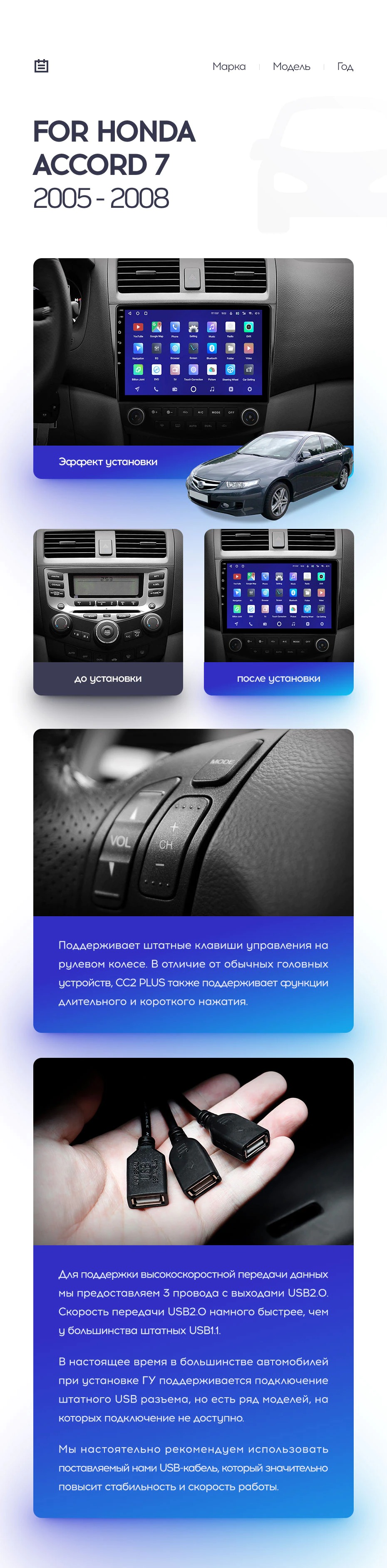 Полный комплект установки магнитолы Teyes с рамкой и проводкой можно выбрать в каталоге штатных магнитол Honda Accord 7 (2002-2008).