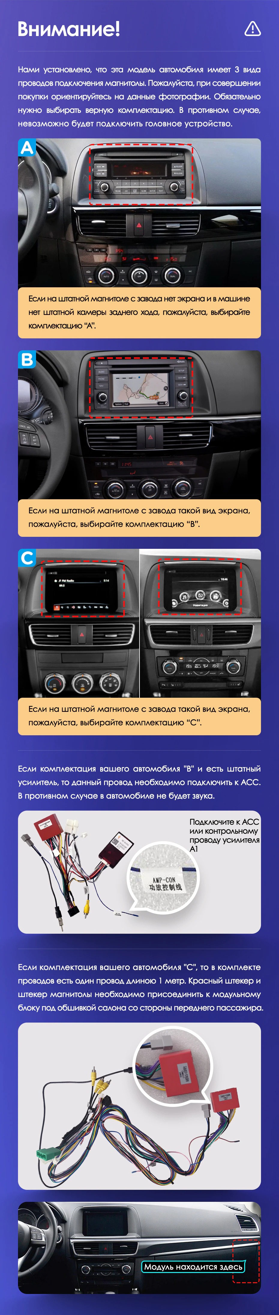 Полный комплект установки магнитолы Teyes с рамкой и проводкой можно выбрать в каталоге штатных магнитол Mazda CX-5 (2012-2015).