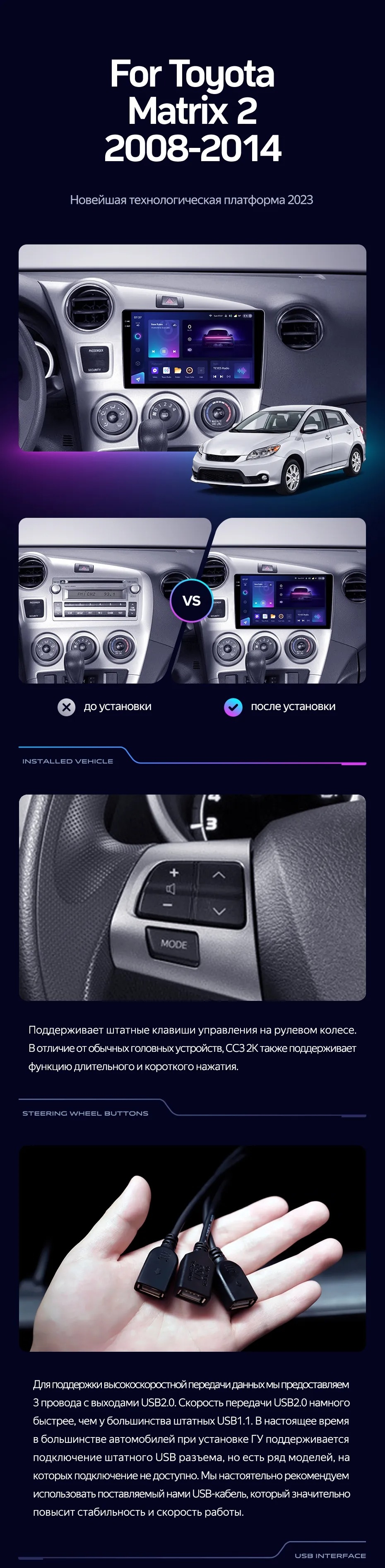 Переходная рамка Toyota Matrix 2 E140 (2008-2014) (9") - купить всего за 5 300 руб. в интернет-магазине в Саратове Teyes.com.ru. ✓ Самый лучший выбор мультимедиа ✓ Лучшая замена штатному ГУ ✓ Тел. +7 (800) 775-31-74
